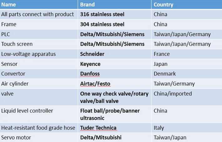 3. Kaikki komponentit, jotka joutuvat kosketuksiin tuotteen kanssa, on valmistettu maahantuodusta 316 litran ruostumattomasta teräksestä ja käsitelty CNC-koneilla.